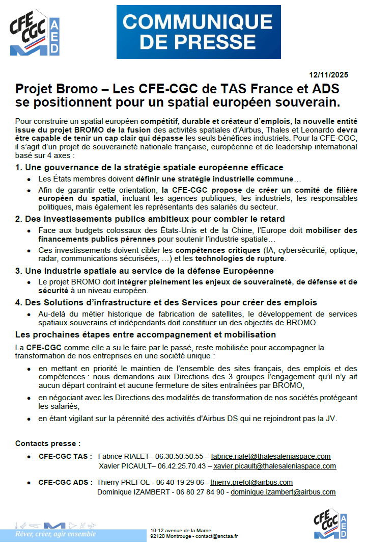 Communiqué de presse CFE-CGC Airbus DS/TAS.