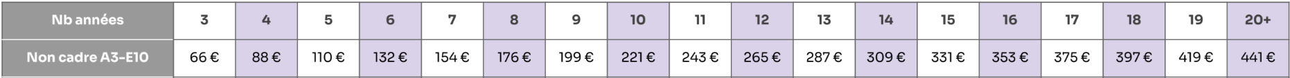 Tous les salariés occupant un emploi Non Cadre (Classes A1 à E10) bénéficient des primes suivantes :