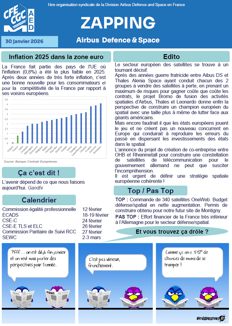 Au sommaire: inflation, stratégie spatiale, gel réforme des retraites, …